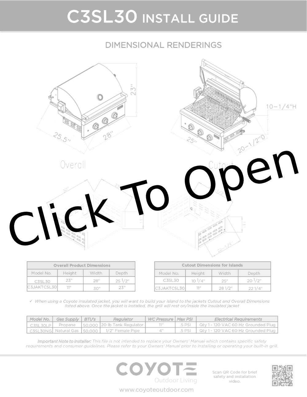 The Coyote SL-Series 30″ 3-Burner Gas Grill combines all the power and function of a luxury grill with the durability of a Coyote grill. This 30-Inch built-in gas grill features 18 gauge 304-grade stainless steel construction with a double-walled canopy and continuously hand-welded grill box with seamless edges. The C3SL30 gas grill offers performance-enhancing ceramic briquette trays that minimize flare-ups and distribute heat evenly across the 525 square inch cooking area. This gas grill is powered by two, durable cast stainless steel Infinity burners and one RapidSear infrared burner which deliver up to 55,000 BTUs of cooking power.