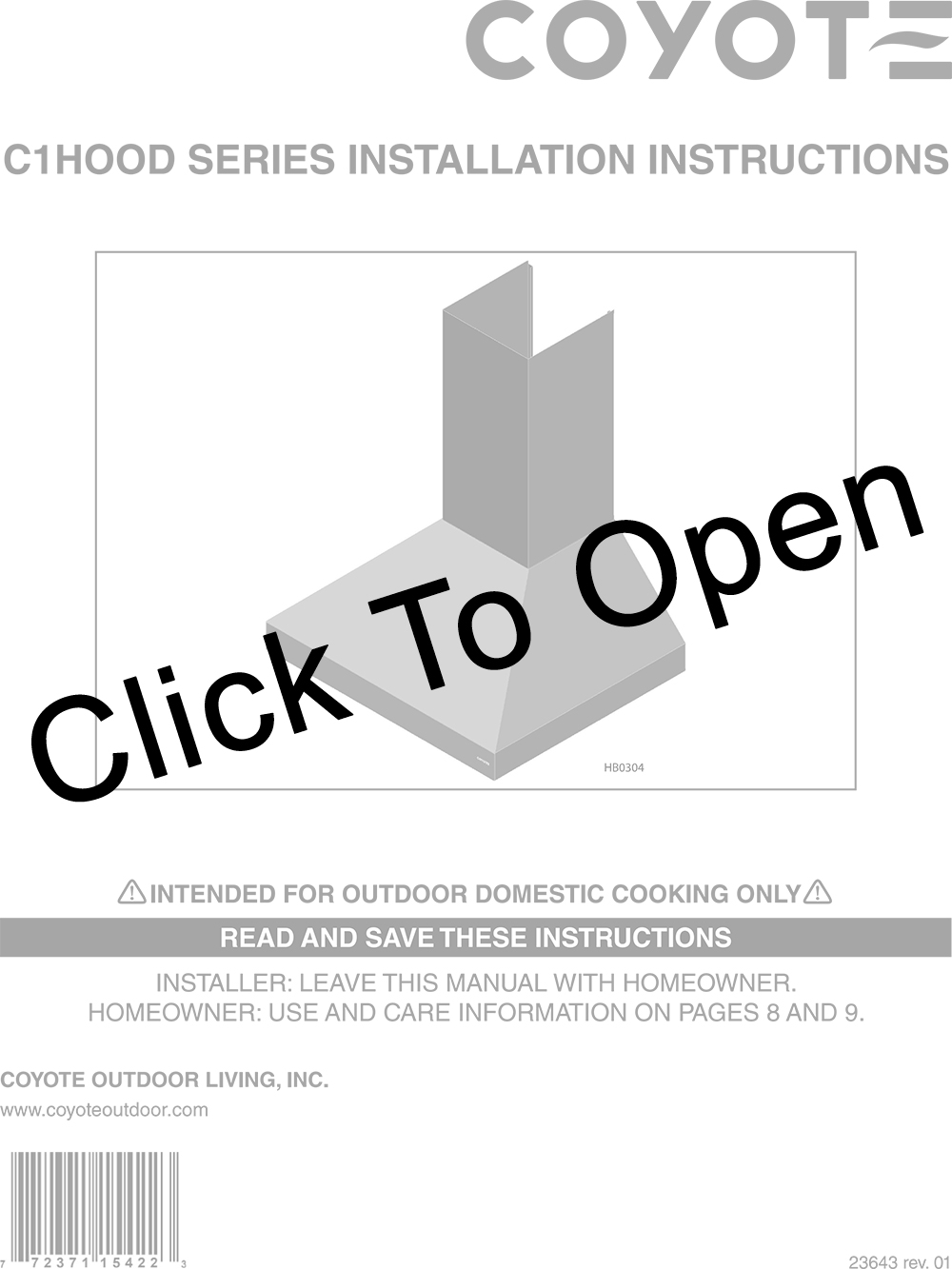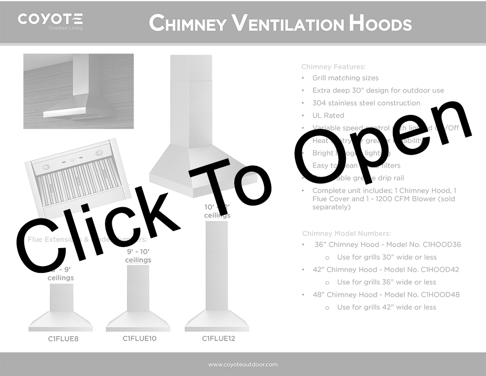 Coyote Stainless Steel Ventilation Hood Features: