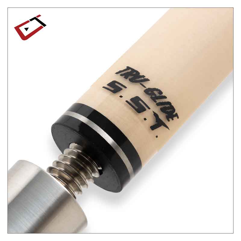Need to replace your shaft or just want a back-up? The Cuetec shaft is available separately and will fit most any Cuetec two piece cues. They feature a Tiger Everest ten layer Pigskin tip with a red replacement indicator layer, Polycarbonate ferrule for impact absorption, Super Slim Taper (S.S.T.) shaft featuring a 15 ½” pro taper and Tru-Glide finish for an ultra-smooth comfortable stroke. Clear fiberglass is bonded to Grade A North American Maple for warp, dent, ding, and scratch resistance. Black implex collar with the 1/8” thick chrome trim ring to match the trim ring on the Cuetec Cue you already have.