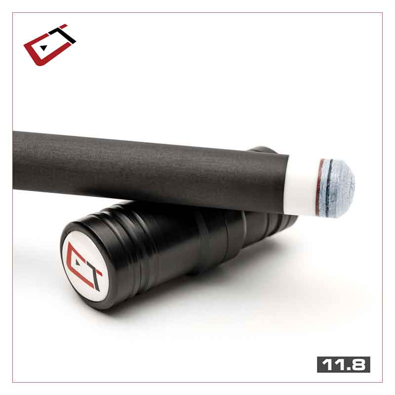 Leaner and Meaner. The Cuetec Cynergy 11.8mm builds on the unparalleled success of Cuetec’s Cynergy 12.5mm carbon fiber composite shaft, the first carbon fiber shaft playing shaft used to capture a Men’s WPA World Title.Constructed using the same Cuetec proprietary technology and components as in the heralded 12.5, each Cynergy 11.8 provides players with increased room for pin-point exact tip placement, while creating tremendous spin, and benefiting from the superbly consistent accuracy, feel, and feedback that has made Cynergy the hottest carbon fiber composite playing shaft in billiards.