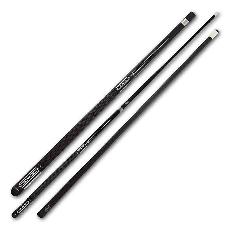 This Black Graphite Cuetec Cue is a great playing cue that also offers an enhanced break. It features a deluxe hard brown leather tip, Polycarbonate ferrule for impact absorption, and a professional taper for a comfortable stroke. Black Graphite is bonded to Grade A North American Maple for warp, dent, ding, and scratch resistance. Chrome accents with a matching black Hardwood butt featuring a rubberized textured wrap for a sure grip with a beautiful eye catching design all at a price everyone can afford.