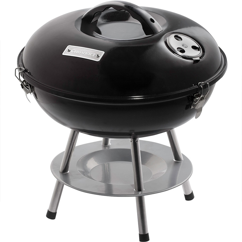 The Cuisinart 14-inch portable charcoal grill offers the perfect solution for all your on-the-go grilling needs. This compact little grill is lightweight and easy to transport yet still offers over 150 square inches of grilling space – enough to grill for the entire family or the carload at the big game. The firebox is enamel coated giving it strength and durability to survive the harshest grilling conditions. The dual venting system helps control the heat so you can cook at searing hot temperatures, or low and slow. For added convenience, the lid is secured by 3 durable locks, and the ash tray is accessible for easy clean-up.