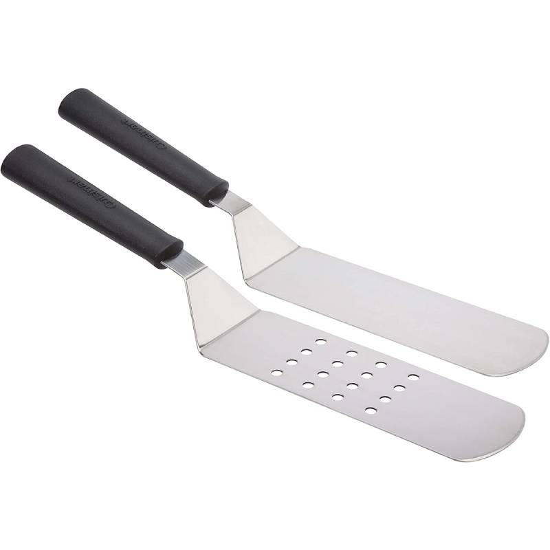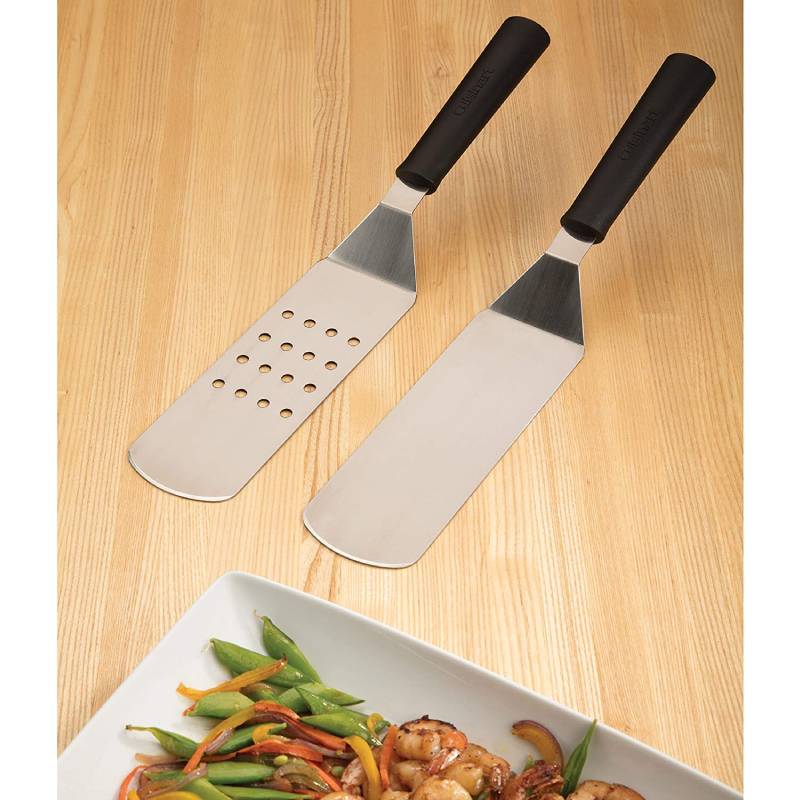 The Cuisinart 2 Pack griddle spatulas is the perfect set for all your griddle needs. Both spatulas feature rounded ends to prevent scratching on griddle surface. Fats & liquids drain easily through the perforations featured on one of the spatulas. This set is great for Teppanyaki, hibachi, camping, tailgating, & more!