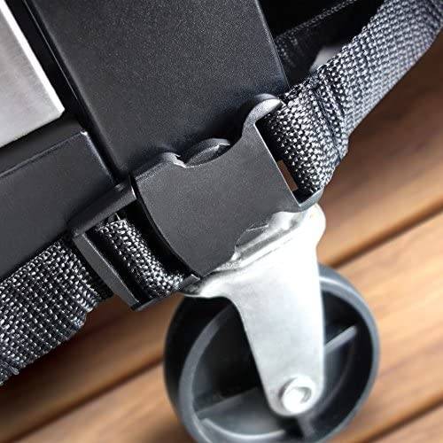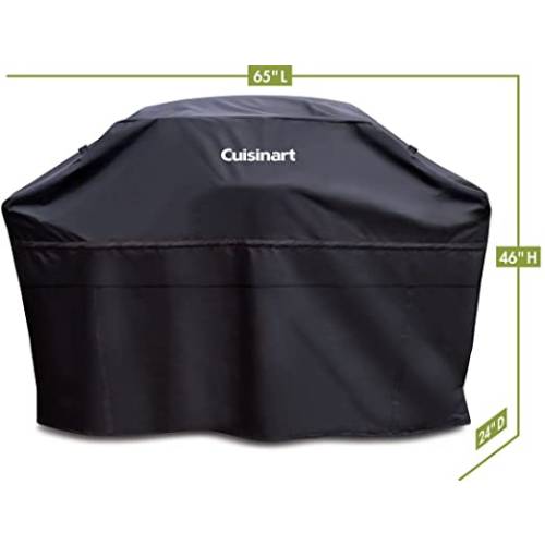 The Cuisinart 70″ Grill Cover is built to last. This cover is the perfect combination of durability and convenience. With wind and water resistant fabric, your grill will stand the test of time and be safe from the elements and even UV rays. The dual-sided vents will dissipate excess heat and prevent condensation, and the dual-sided grip handles allow for easy removal of the cover. Never worry about the wind removing your cover because it has a snapping lock, wheel fasteners, and adjustable draw strings. If that isn’t enough, the easy-access flap built into the cover allows for quick access to your fuel tank.