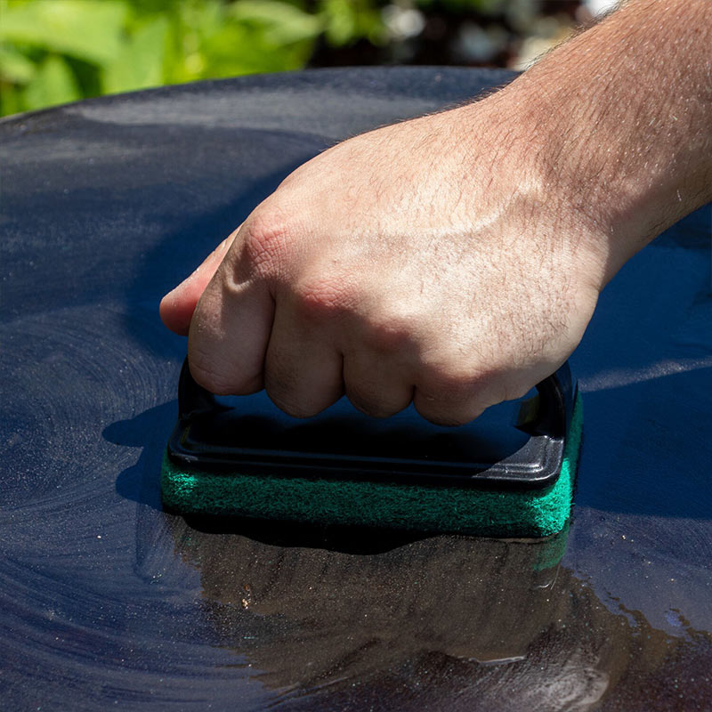 - Use one of the three scour pads in the set to finish off the cleaning process and leave your griddle surface with a nicely buffed finish