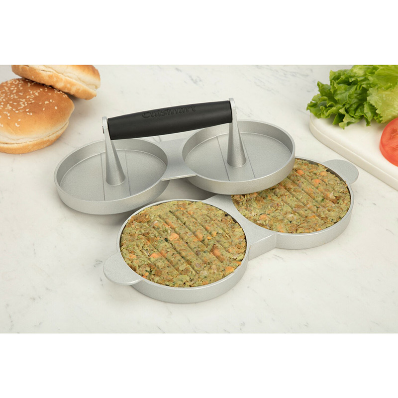 Make two perfect burger patties at once with the Cuisinart double burger press. Use it to create beef burgers, turkey burgers, salmon burgers, and more! The non-stick surface helps to keep your patties intact and makes clean up easy. Simply add your ground meat to each side and press down – it’s as easy as that! With Cuisinart’s double burger press, you’ll enjoy the ease of making your own burger patties and impress your guests with the consistency of the shape.