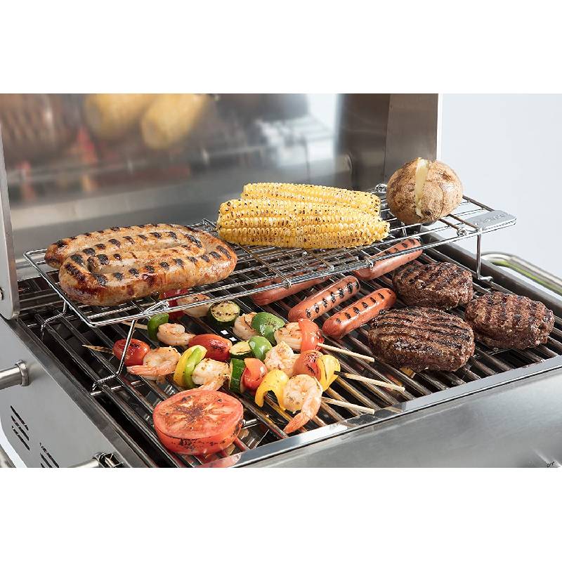 The Cuisinart Adjustable Grill Warming Rack provides you with extra space to keep food warm or toast buns, allowing you to use the full surface of the grill to cook your main meal. Easily extends from 15.5 inches to 21.75 inches. Also acts as a second grill grate, ideal for cooking items that don’t need to be on direct heat, like some vegetables. Whether you are keeping finished food warm or toasting buns, the Cuisinart Adjustable Grill Warming Rack offers you that extra space you need!