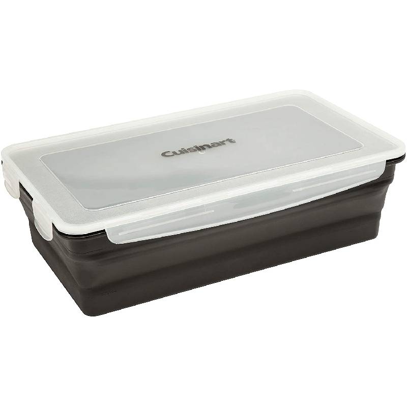 The Cuisinart Collapsible Marinade Container will give you all the space needed to marinate large cuts of meat while still being able to fit inside your refrigerator. This mega container is great for marinating or brining and can fit up to a 12-pound bone-in pork shoulder or ham, 9-pound standing rib roast, two 6-pound chickens, or up to a 12-pound chicken (minus wings and legs). This BPA-free plastic marinade container with a snapping lid measures 17.12″x10″x5″. Simply collapse down for space-saving storage when not in use (1.87″ height when collapsed).