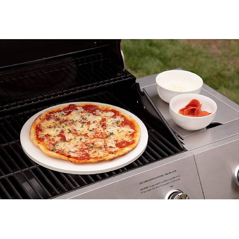 - The 15″ cordierite pizza stone measures 0.5″ thick to help promote durability and maximum heat retention for producing a perfectly cooked crust.