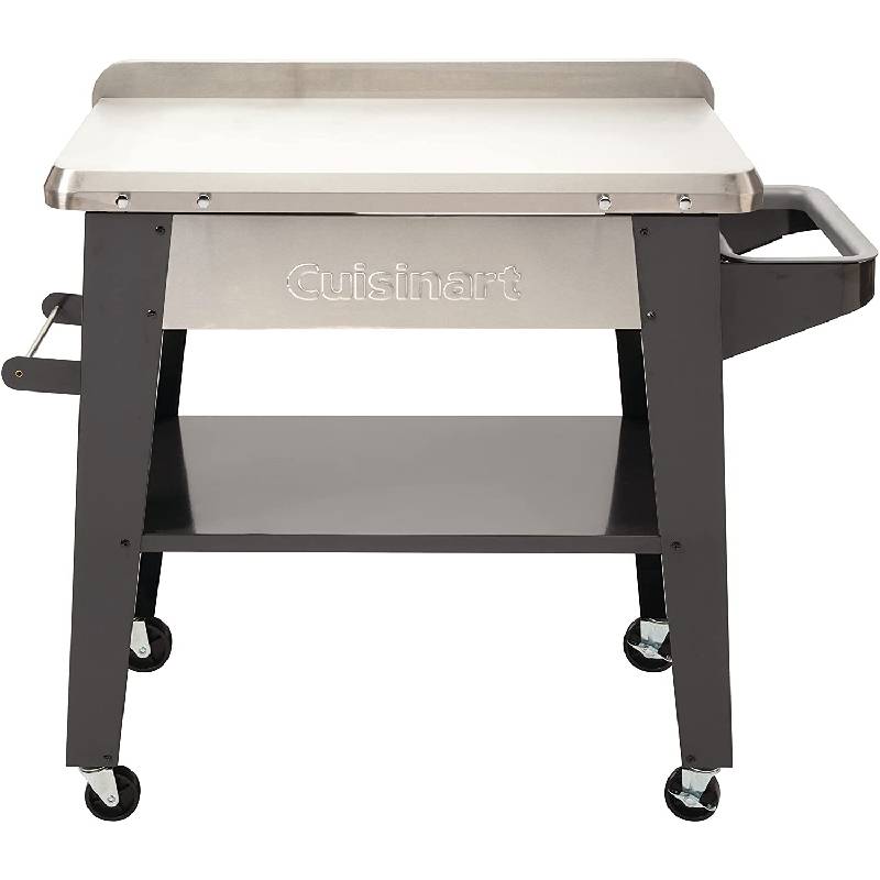 This Cuisinart Outdoor 36″ x 22″ Prep Table stainless steel work surface helps provide plenty of space. The integrated trash bag holder allows for easy disposable of trash and food waste from the work surface. Paper towels are always necessary when prepping and cooking outdoors, that’s why the Prep Table comes equipped with a paper towel holder. The 4 swiveling casters make moving the table effortless, allowing you to easily situate it in the perfect spot in your yard. The storage shelf allows you to keep all of your grilling essentials handy while outside, cutting down on time back and forth to the kitchen.
