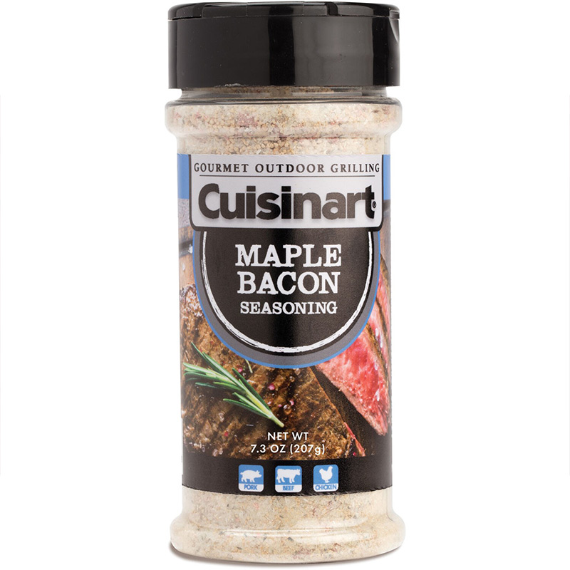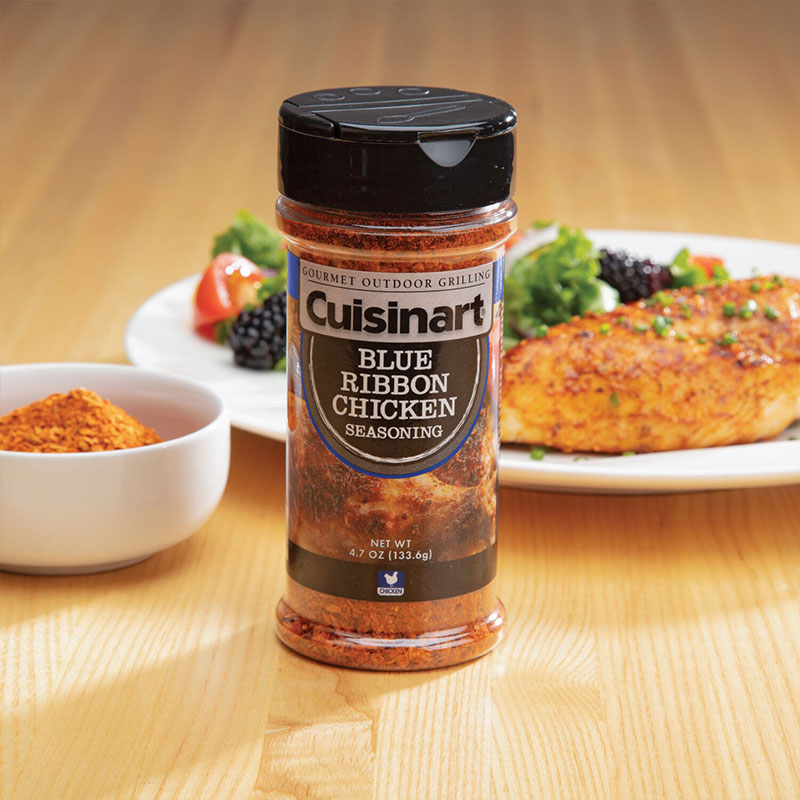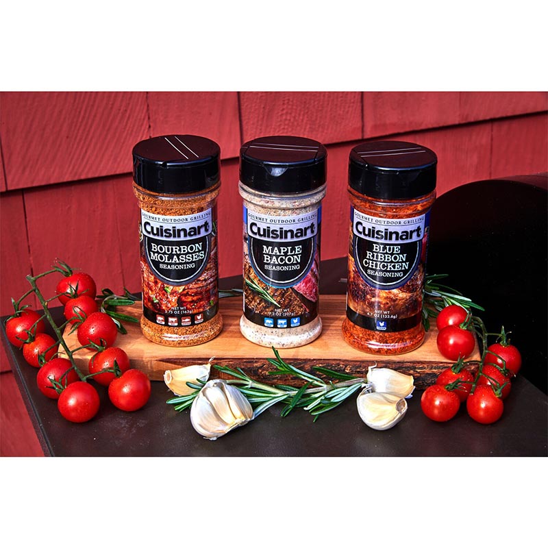 Cuisinart’s value pack has you covered with 3 mouthwatering blends; Bourbon Molasses, Maple Bacon, and Blue Ribbon Chicken. Each has its’ own unique blend of ingredients that will make your guest reach for more. Whether you are roasting, grilling or smoking, the savory hints of bourbon combined with the sweetness of molasses will make any dish stand out. Cuisinart’s Maple Bacon Seasoning blend brings out the sweetness of maple with salty notes of bacon, creating a savory flavor that your guests will love. Cuisinart’s Blue Ribbon Chicken Seasoning is a perfect way to change up your normal grilled chicken recipe. This robust seasoning will make grilled chicken taste fantastic and is also great on other types of poultry. The flavor is salty and savory, with background notes of onion and garlic.