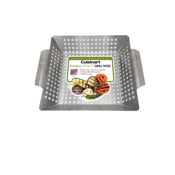 The Cuisinart SS 11″ X 11″ Wok is a simple way to bring stir fry and other fun dishes to the grill. This wok features raised sides to hold your food in while perforations let you get the real grilling experience.A perforated steel wok that’s ideal for cooking bite sized wok-style foods with the on the grill flavor without having them fall through the grate.