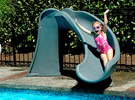 The Cyclone Swimming Pool Slide is the perfect addition to any size inground swimming pool. This compact little slide fits on virtually any size deck to make your pool fun for kids.Fast and easy to install, its unique design doesn’t need a water hood up–making it easy to install anywhere on your pool deck. Add some instant fun to your with the Cyclone Slide!