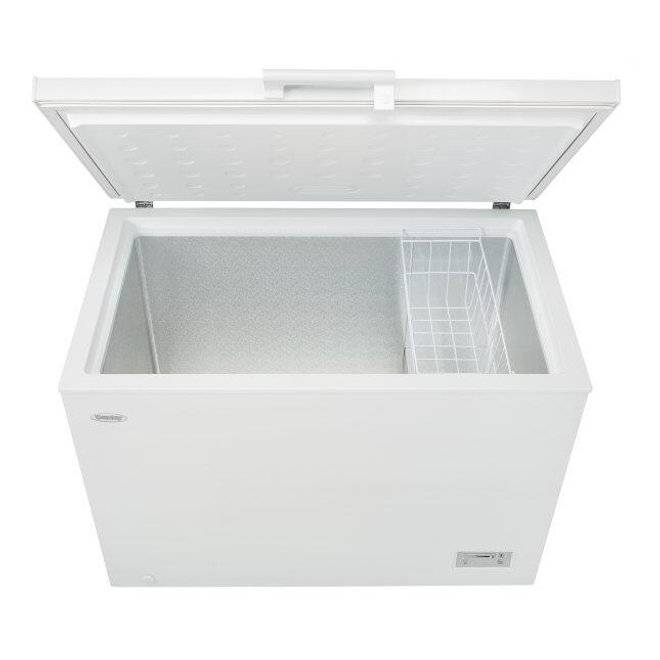 The Danby 11.0 Cu. Ft. White Chest Freezer Energy-efficient foam insulated cabinet and lid. Manual defrost, 1 basket, defrost drain with electric thermostat and LED display.