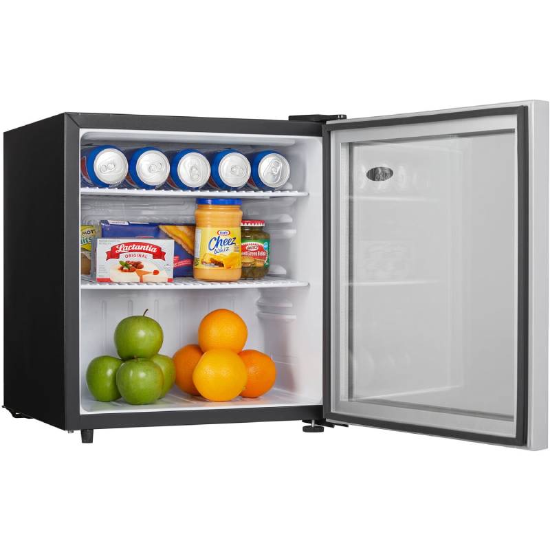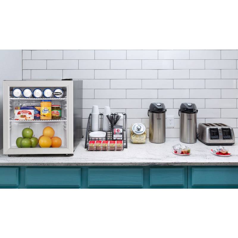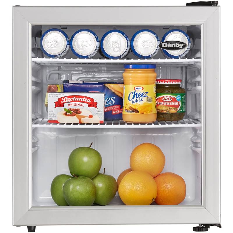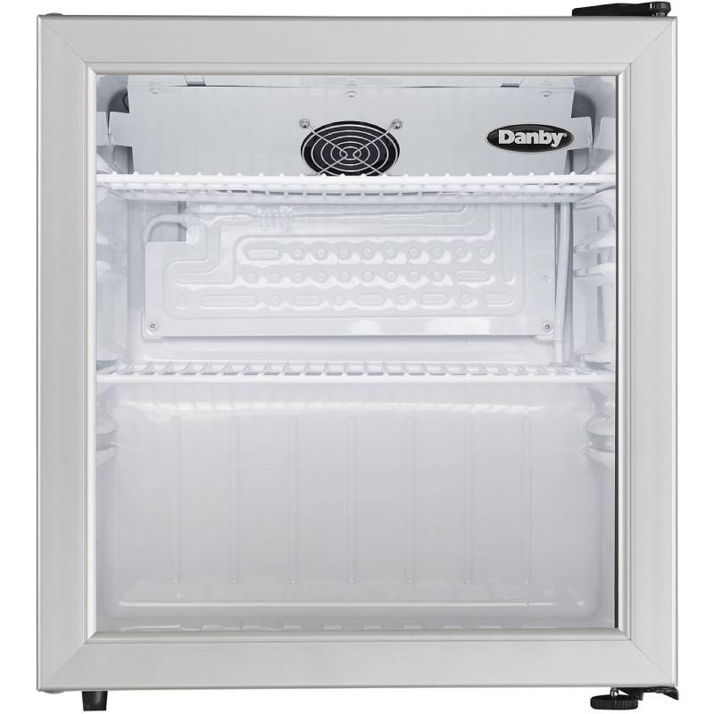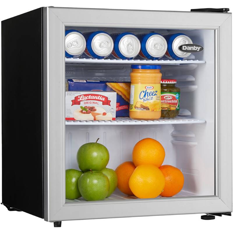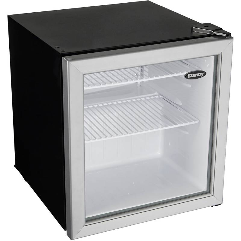 This commercial-grade Danby 1.6 cu. ft. compact all-refrigerator features an elegant see-through glass door design with a stainless steel-look trim. Its ample storage space, interior LED light, and commercial-grade energy rating makes it the perfect addition for your guests.