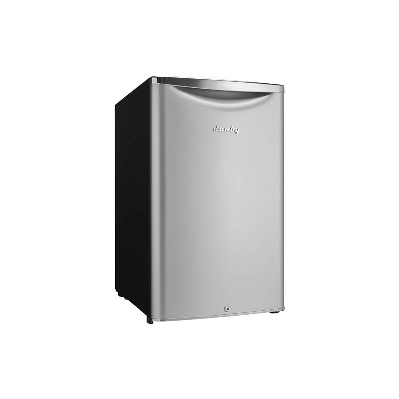 This Danby DAR044A6DDB 4.4 CuFt. Retro Silver Compact Refrigerator’s Drawing inspiration from mid-century styling and simplicity, Danby’s Contemporary Classic collection of compact refrigerators reimagine retro for the modern consumer. Featuring Danby’s exclusive retro-inspired curved door design, metallic door finish, door lock, rubber-grip ergonomic chrome handle and stylized chrome worktop, its exterior features are only outmatched by its signature black interior.