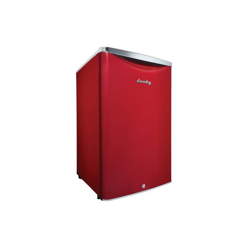 This Danby DAR044A6LDB 4.4 CuFt. Retro Red Compact Refrigerator’s Drawing inspiration from mid-century styling and simplicity, Danby’s Contemporary Classic collection of compact refrigerators reimagine retro for the modern consumer. Featuring Danby’s exclusive retro-inspired curved door design, metallic door and chassis finish, door lock, rubber-grip ergonomic chrome handle and stylized chrome worktop, its exterior features are only outmatched by its signature black interior.