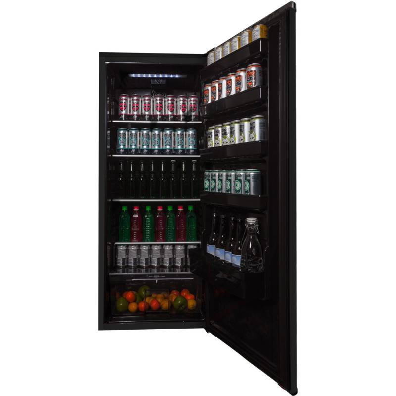 Drawing inspiration from mid-century styling and simplicity, Danby’s patented contemporary classic refrigerators reimagine retro for the modern consumer. The contemporary classic all fridge features Danby’s exclusive retro-inspired curved door design, black metallic door and chassis finish, rubber-grip ergonomic chrome handle, stylized chrome worktop, and a signature all-black interior. Boasting 11 cubic feet (311 L) of storage and cooling space, this all-fridge model is ideal for condos, apartments, or townhouses. Cut down on clutter with three chrome-trimmed tempered glass shelves, five integrated door shelves, and tall bottle storage for maximum storage versatility. Reduce your electricity bill and save on energy with this Energy Star rated model. Easily find your eggs, vegetables, or fruit with the bright interior lighting system. Store your groceries in the glass-covered vegetable crisper, and the mechanical thermostat is conveniently located for easy temperature control. Maintenance and cleaning are as simple as can be with the automatic defrost system. Lastly, this stylish appliance features a clever, reversible hinge that allows you to set it for right or left-handed opening.