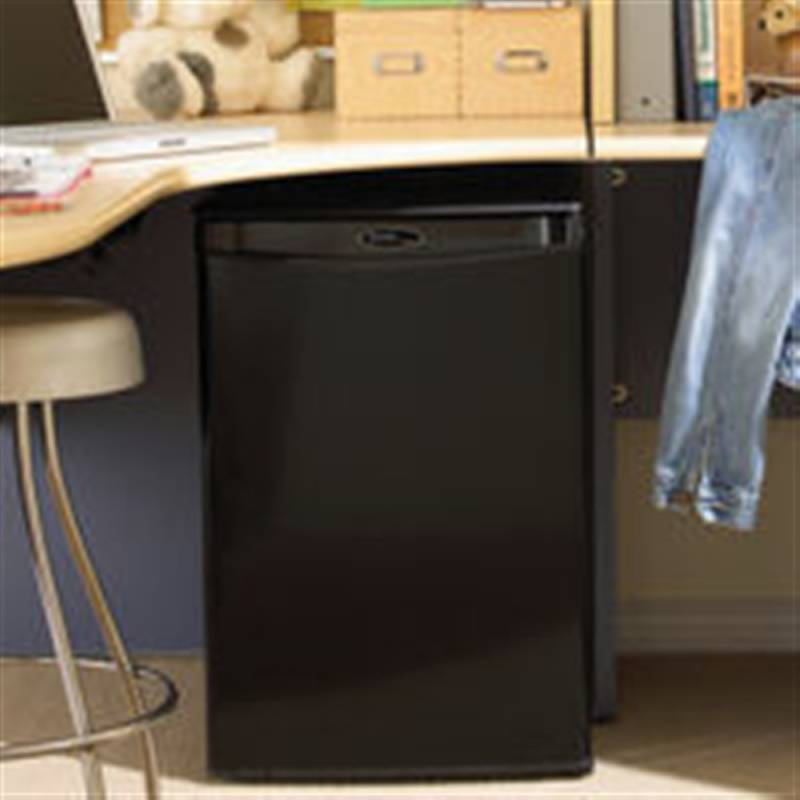 The Danby Designer Energy Star 2.6-cu. ft. compact all refrigerator is energy efficient refrigeration in a convenient, compact unit. Perfect for small spaces, this model makes a great addition to the student dorm room or small office. It includes the CanStor beverage dispenser, tall bottle storage and a scratch resistant work top to store accessories. With a reversible door hinge, an integrated door handle and a smooth-back design, this handy refrigerator will fit almost anywhere.