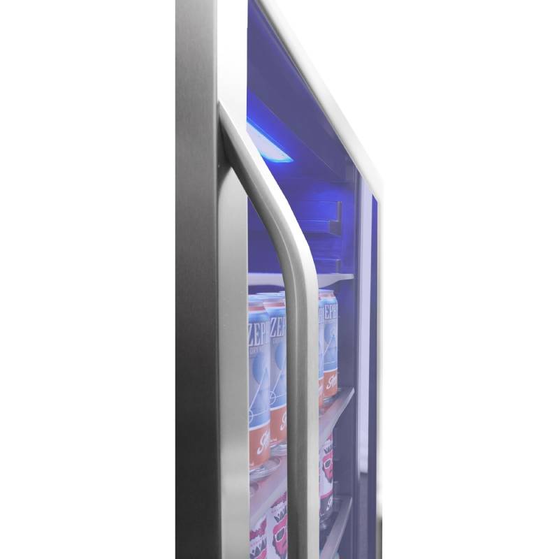 Whatever your chilled choice of decadent drink may be, this Danby Silhouette Ricotta Black/Stainless Steel Single Zone Beverage Center is outfitted to accommodate. This cooler will undoubtedly make you the host with the most options for indulgence. The minimalist control panel has a clean, discrete look and is easy to use while blue LED track lighting that illuminates the interior of this unit exquisitely displays your wine without any damaging heat. All these features combined create the perfect beverage center for your needs.