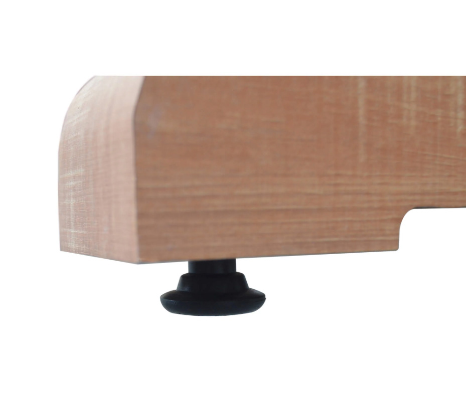 - Trestle style support base with cross beam featuring hidden leg levelers and decorative steel accents – provides rock solid strength and stability