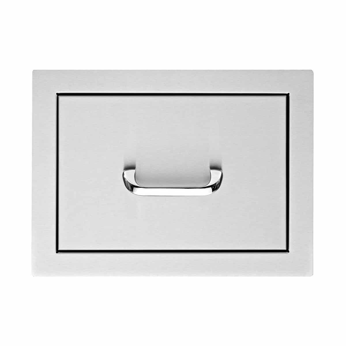 The Delsol 17” Single Storage Drawer provides a premium storage drawer for use with your custom outdoor kitchen. Featuring high-quality 18-gauge 304 stainless steel construction, this door offers a long lasting design. This unit also features a one-piece frame for added durability. A large 5-inch offset handle provides attractive hardware, while heavy-duty full extension slides offer easy drawer access.