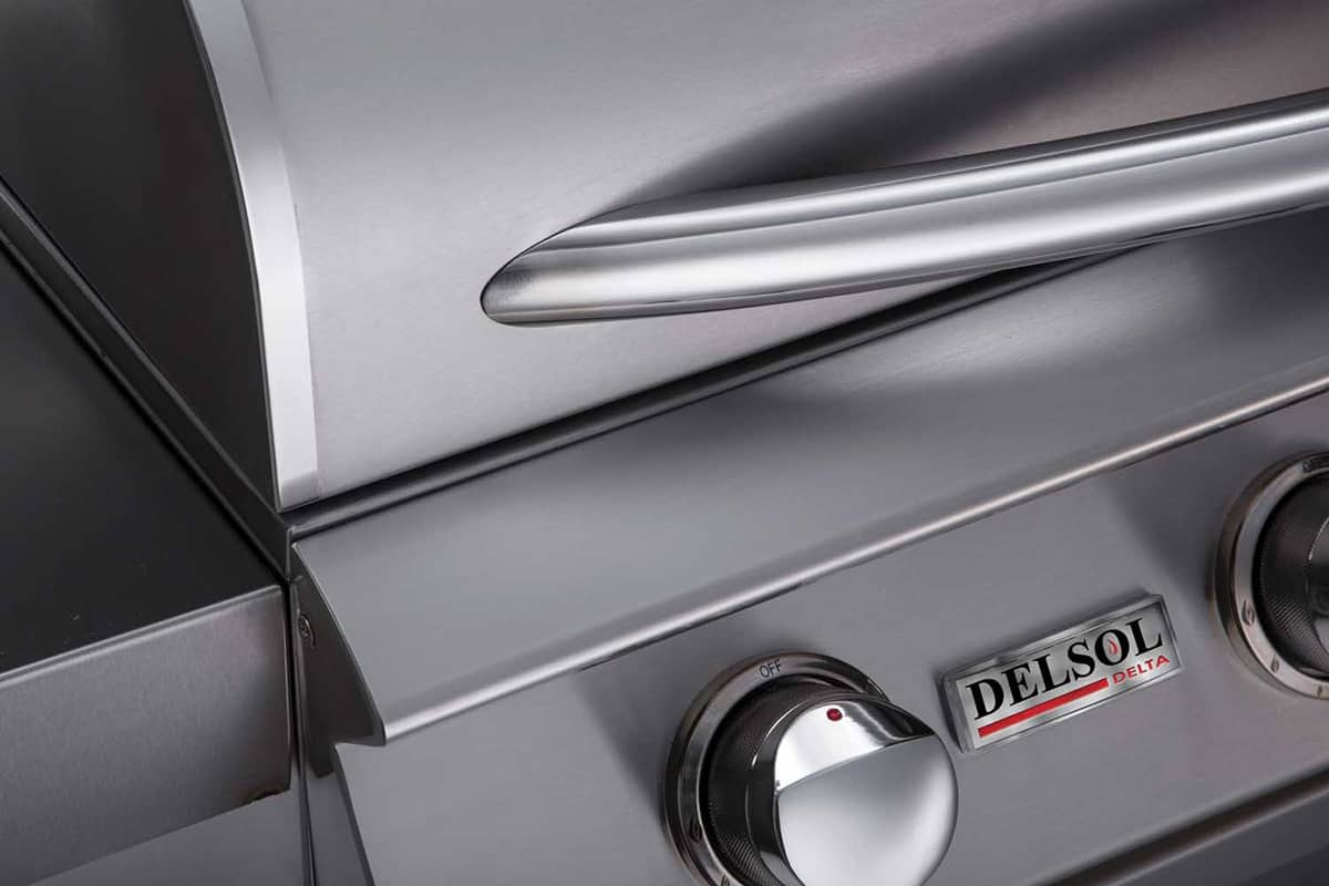 The Delsol Delta 40-Inch 5-Burner Built-In Gas Grill combines a convenient grill size with high-end performance. This grill features (5) 18-gauge 304 stainless steel burners and a 675-square-inch grilling surface. For added performance, this grill features an integrated rear infrared rotisserie burner. Each Delsol grill combines direct heat and ceramic radiant grilling for hotter grilling temperatures and even heat distribution. This innovative design eliminates hot and cold spots within the grill for consistent cooking results across the grill surface. This unit offers high-performance BBQ grilling perfect for professional cooks and weekend grilling enthusiasts alike. For added reliability, this grill features a Push & Turn Flame-assist Ignition System to ensure your grill lights consistently every time. Additional premium specifications include an integrated temperature gauge, a double-lined grill hood, full-width drip tray, and a removable warming/cooling rack with 200 square inches of space. This grill offers a fantastic centerpiece for any outdoor kitchen. With a minimalist contemporary design, seamless welds, and high-polished accents, this grill has been engineered to look as great as it performs. Every Delsol grill is fire tested and packaged in the U.S.A. to ensure the highest quality control standards.