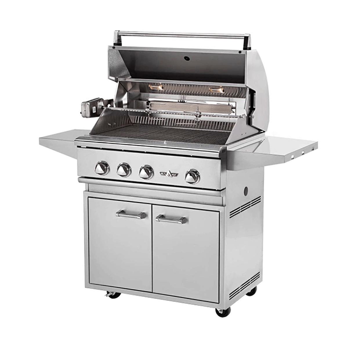 38” and 32” grills are available with or without an integrated rotisserie with infrared (IR) back burner. A rotisserie kit (sold separately) is available for all non-rotisserie grills (Kit model: DHRS-KIT-D fits 32” and 26” grills. Kit model: DHRS38-KIT-D fits the 38” grill).