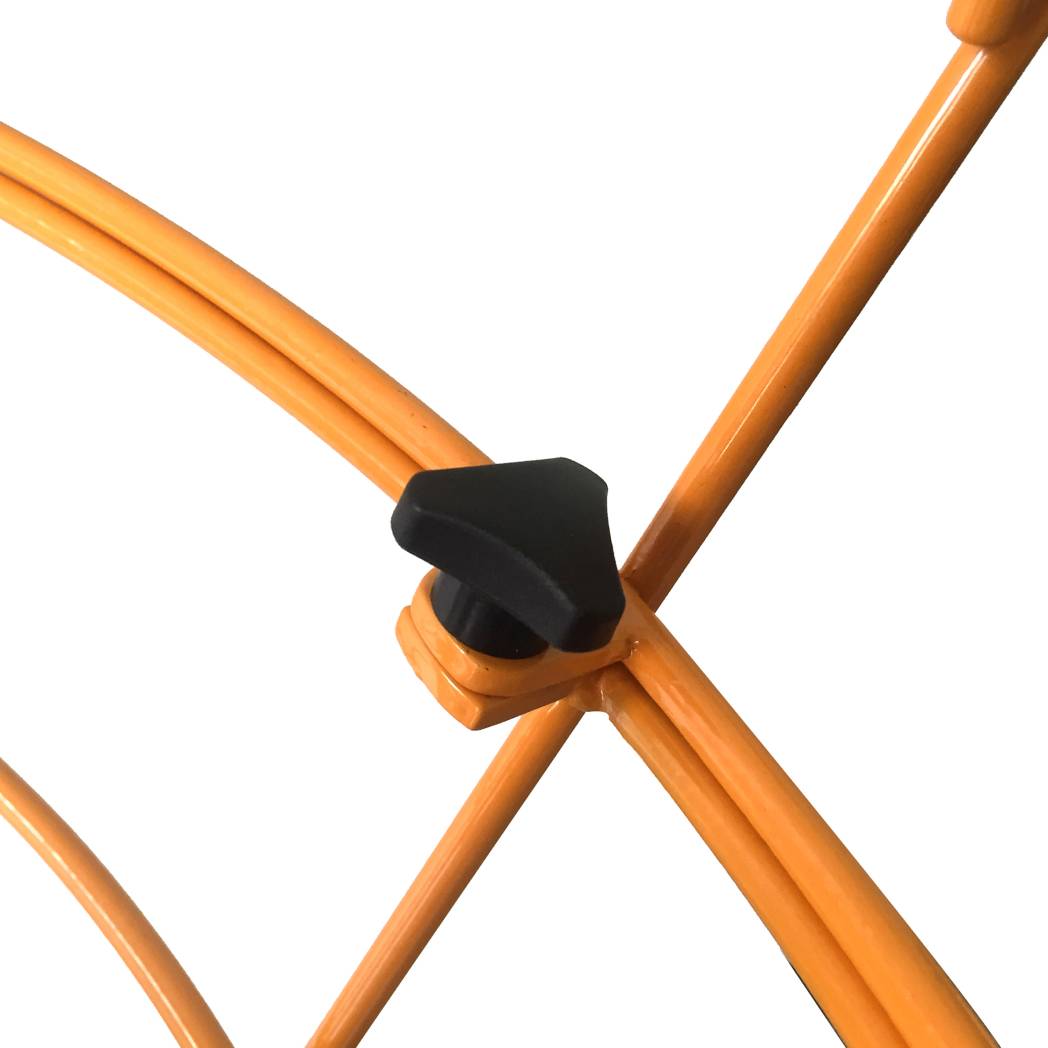 - Sturdy black center support pole with welded base; outer support ring with 4 ground anchors