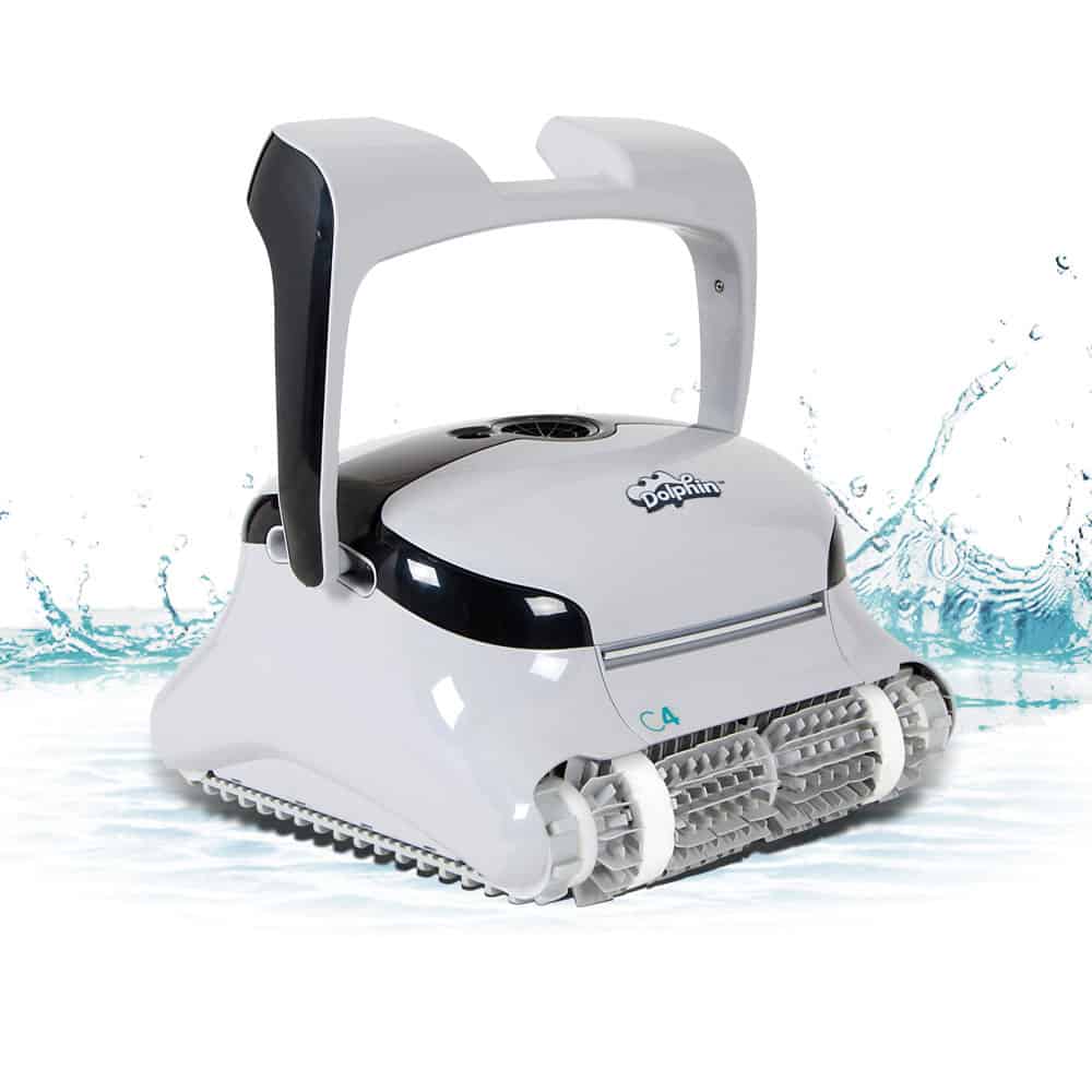 Get the Dolphin C4 Robotic Cleaner W/ Caddy & Remote today! Designed for pools up to 68 feet, the heavy-duty performance of the Dolphin C4 Robotic Cleaner is a perfect solution for small to mid-sized condo, apartment and neighborhood pools. Equipped with dual brushes and a 3rd active brush, the C4 forcefully attacks and removes stubborn contaminants from the floor, walls, and water line leaving your pool sparkling clean.