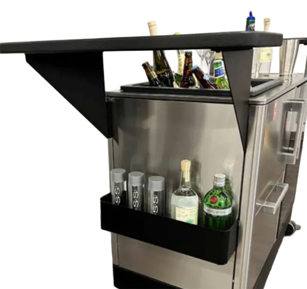 - Ample storage compartments for bottles, glassware, and bar tools