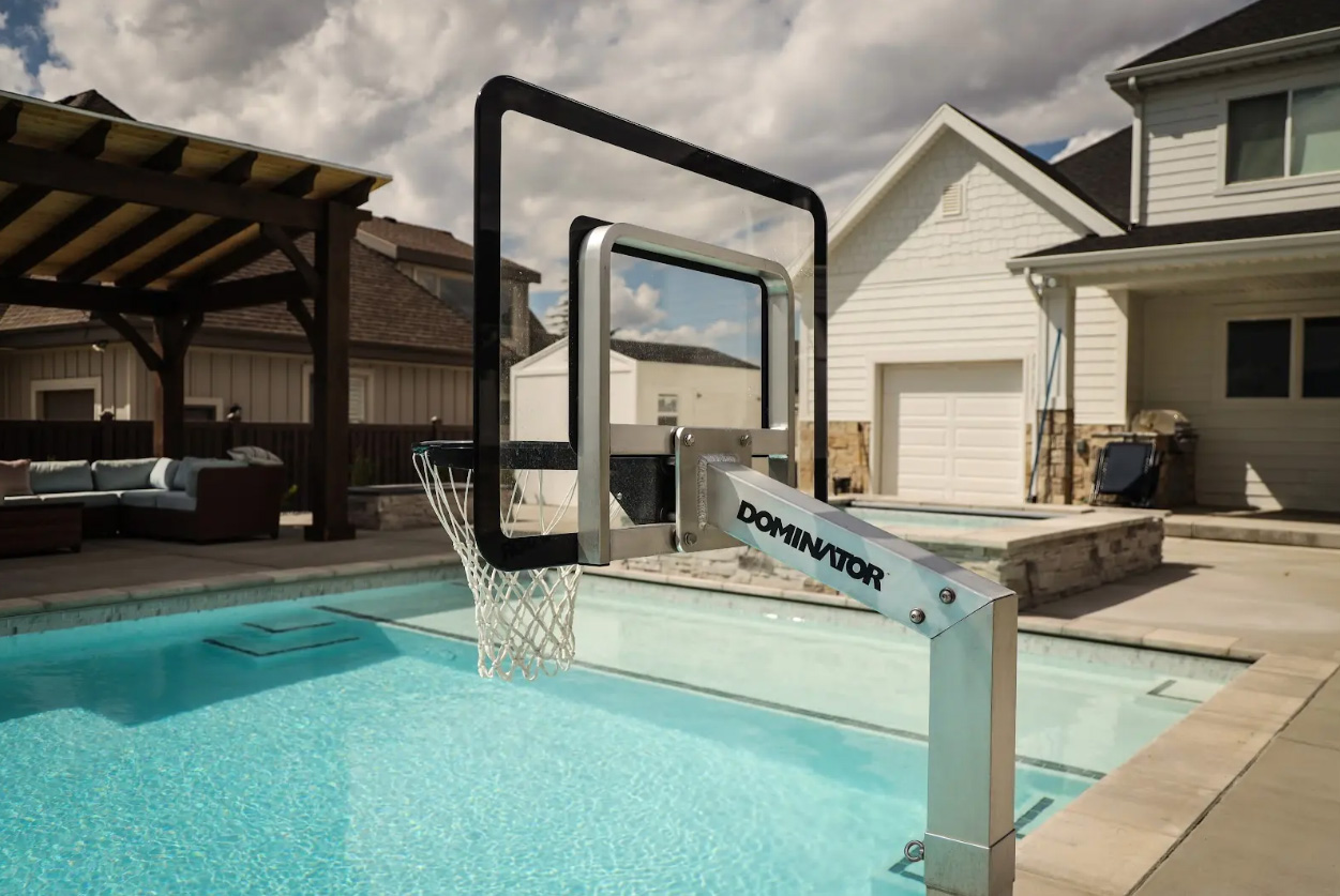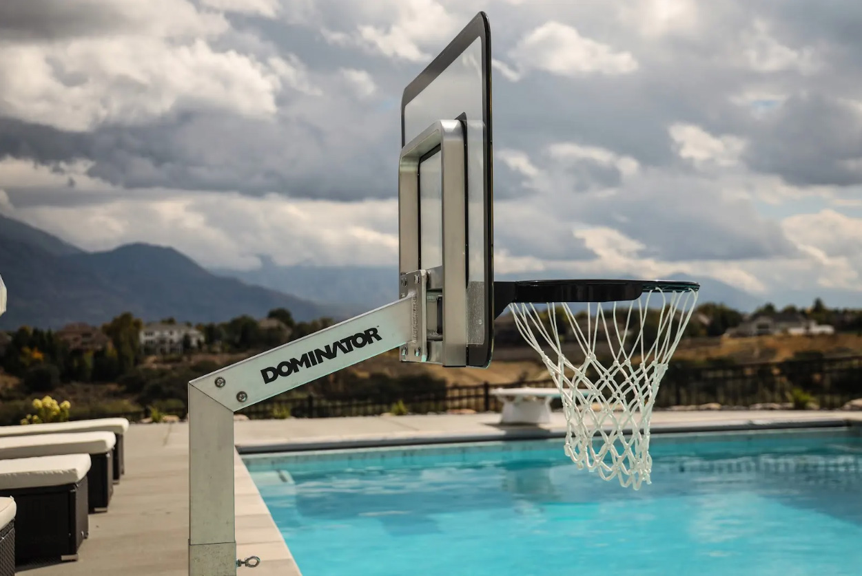 Installation is straightforward—requiring only a single concrete footing for the base and minimal hardware connections. Once installed, the hoop stands at the ideal height for pool play, striking a balance between safe clearance and competitive energy. Whether you’re running a family shootout, challenging friends to a dunk contest, or simply enjoying casual poolside fun, the Dominator provides the same consistency and precision as professional systems. Built in the USA and designed to last decades, this poolside basketball hoop represents the ultimate fusion of design, durability, and all-season entertainment.