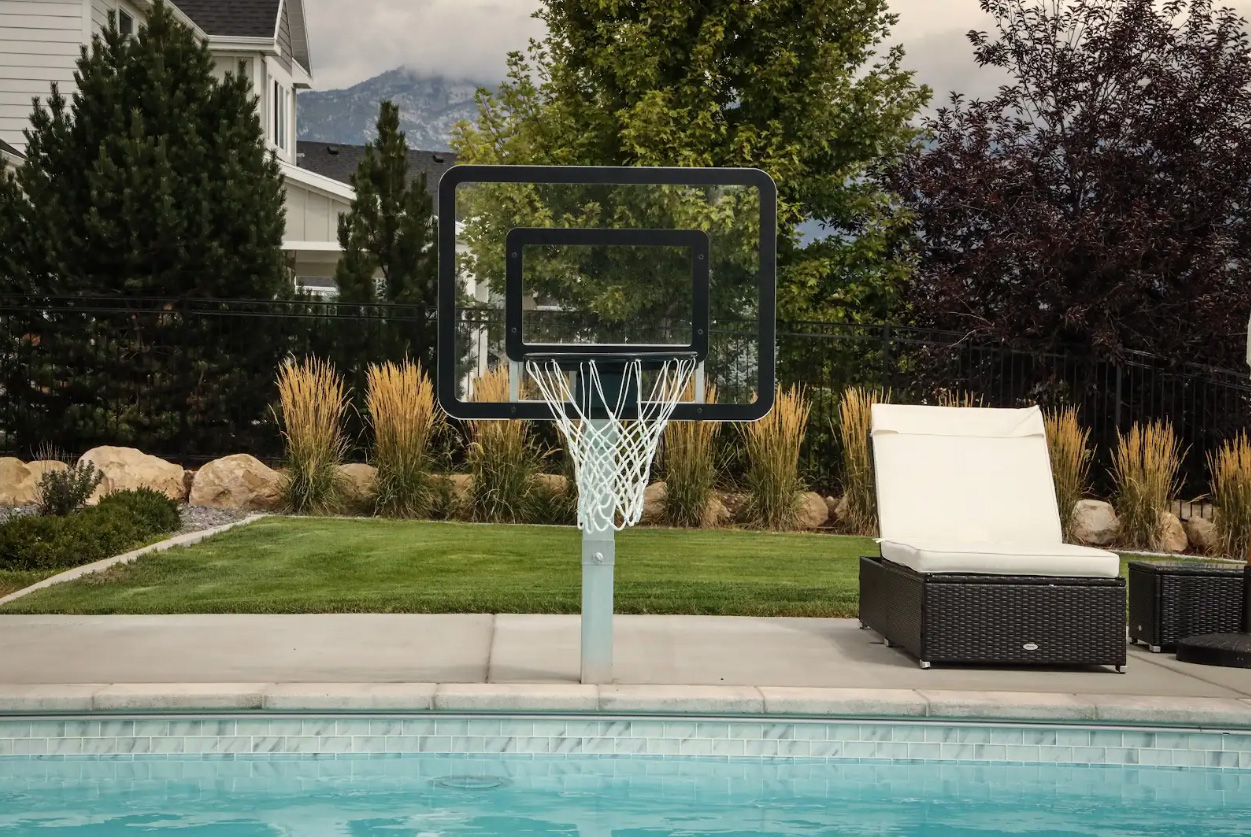 Its inground design anchors securely beside your pool, creating a permanent, sleek setup that doesn’t wobble or flex under pressure. The 40″ clear acrylic backboard mimics regulation play while maintaining a lighter, more pool-appropriate footprint. Players will notice a smooth rebound response and crisp ball reaction, just like a gym-grade setup. The vinyl-coated, spring-loaded rim absorbs impact, reducing stress on both the player and the hoop while delivering that satisfying “swish” feel.
