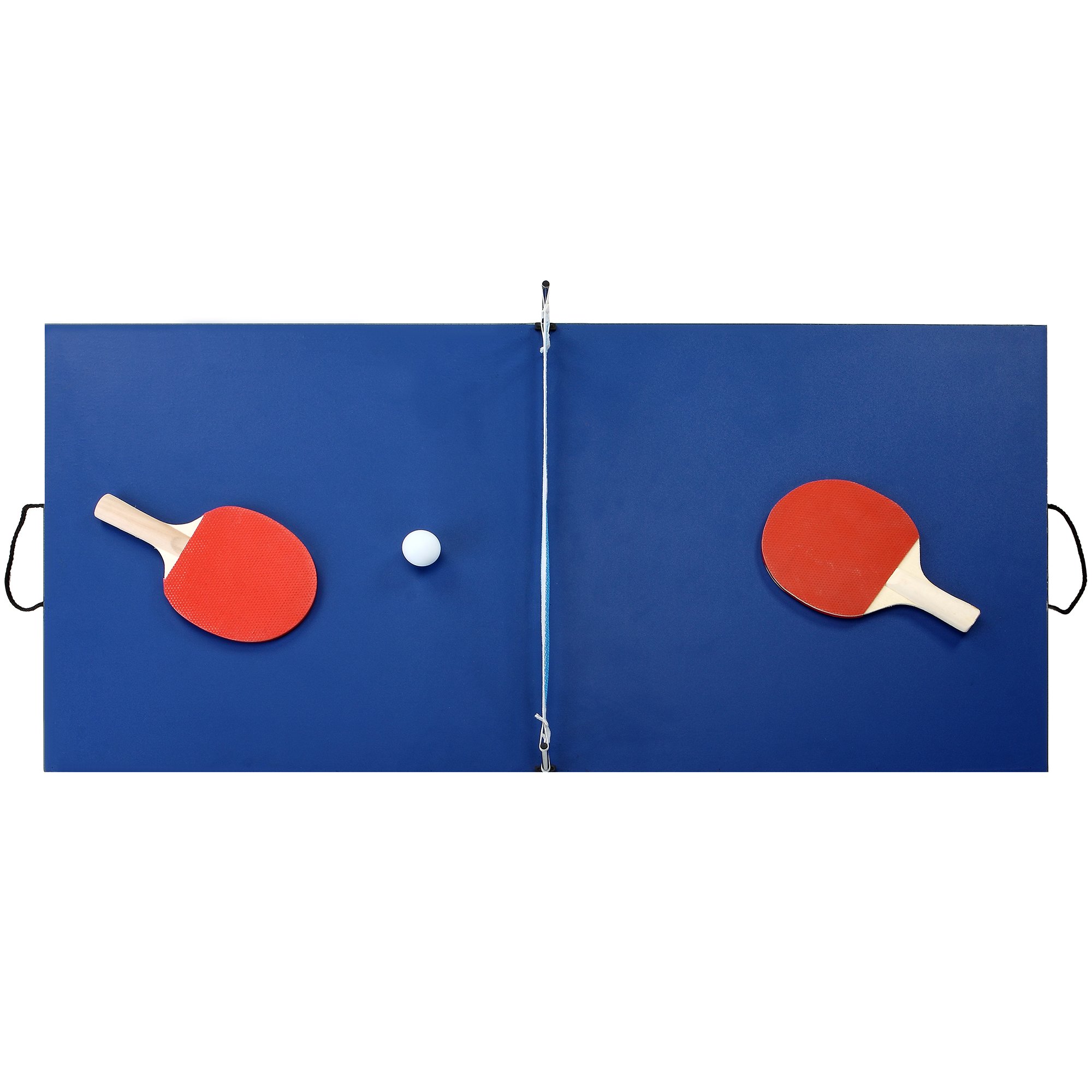Settle the score wherever you go with the Drop Shot 42 In Portable Table Tennis Set. This table is constructed from durable CARB certified MDF material, designed for portability, quick set up and easy storage. Comes complete with net, posts, two paddles, and two balls. Provides immediate fun right out of the box! 180-day limited warranty.