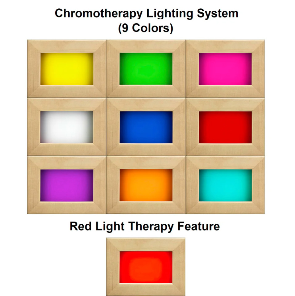 - Interior Chromotherapy Color Lighting System + Red Light Therapy Feature