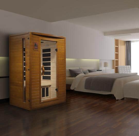 Unlike traditional rock and water saunas (which heat at or over 200F and do not penetrate your skin), Dynamic Saunas operate at a much lower and safer 130F. In fact, Dynamic Saunas operate most effectively at 120F thus allowing you to enjoy the sauna longer and maximize all potential health benefits. Dynamic Saunas can be installed on carpet or any indoor location including basements, master baths, walk in closets or can also be added to a fitness room.