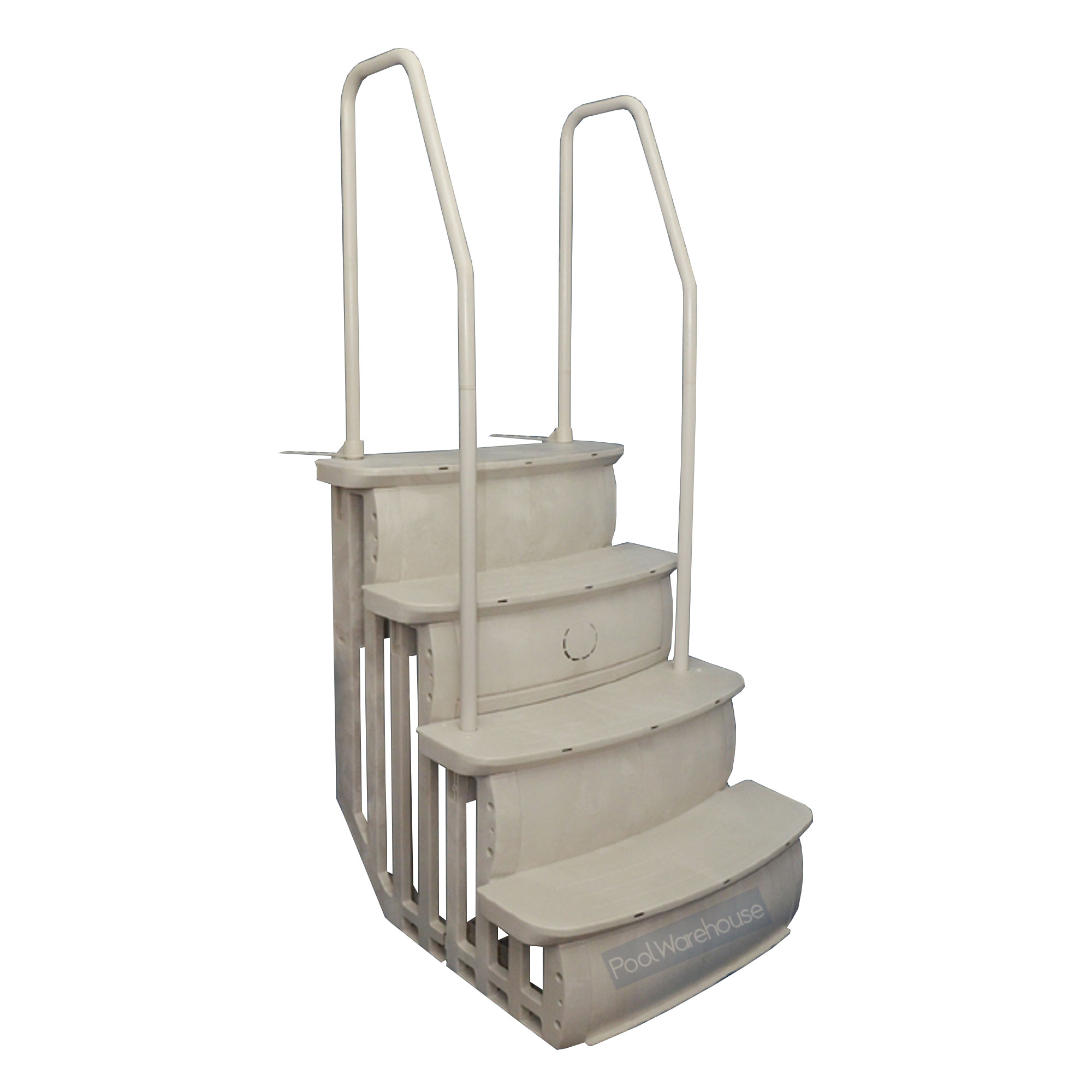 Designed safety and comfort in the Easy Entry step. This pool side entry offers 36 inch wide treads and two heavy duty handrails to make any swimmers pool entry safe and easy. The Easy Entry step offers adjustments from decks 48 to 54 in. Assembles in minutes. Attractive taupe color. Meets and Exceeds all safety guidelines. Includes mounting flanges. Made of high impact corrosion-proof material for years of use. Dimension – 44 x 28.75 x 15.5 in.
