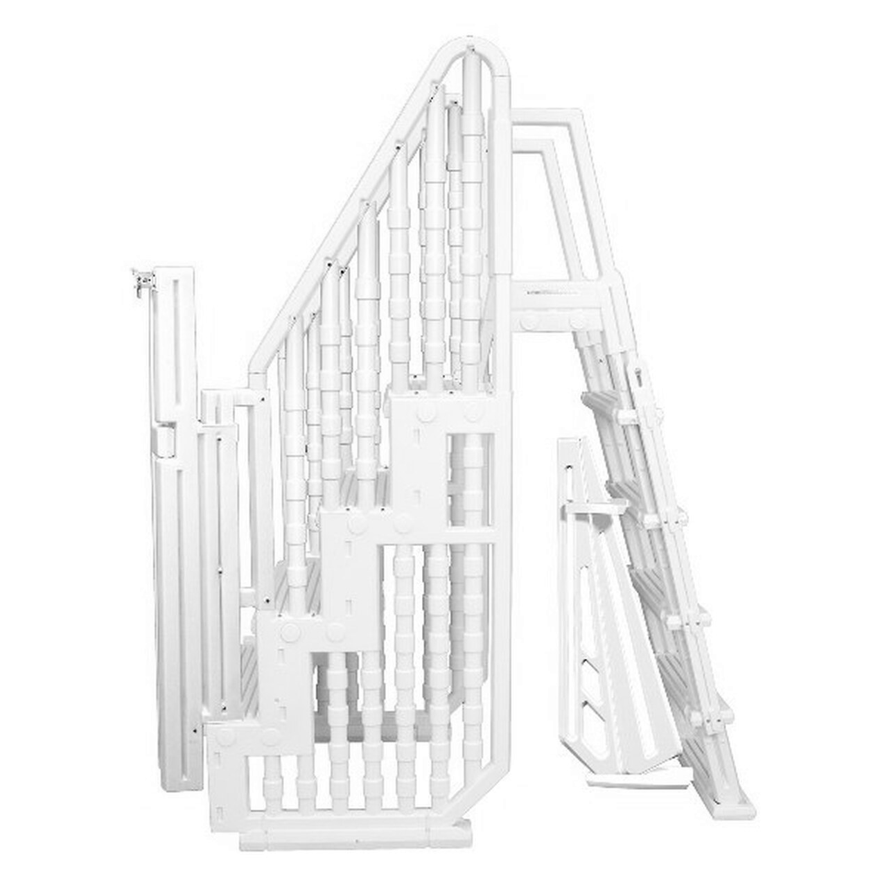 The newest addition to the Easy Pool Step line combines the ease of a step for the exterior with a space-saving ladder for inside the pool. With the added benefit of a lockable gate for pool security, this deluxe, maintenance- free entry system gives you the benefits of a top of the line entry system at an economical price.