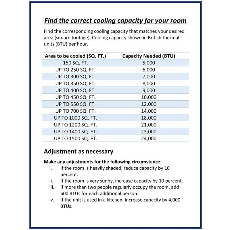 - 5,000 BTU air conditioner for window-mounted installation cools a room from 100 to 150 sq. ft.
