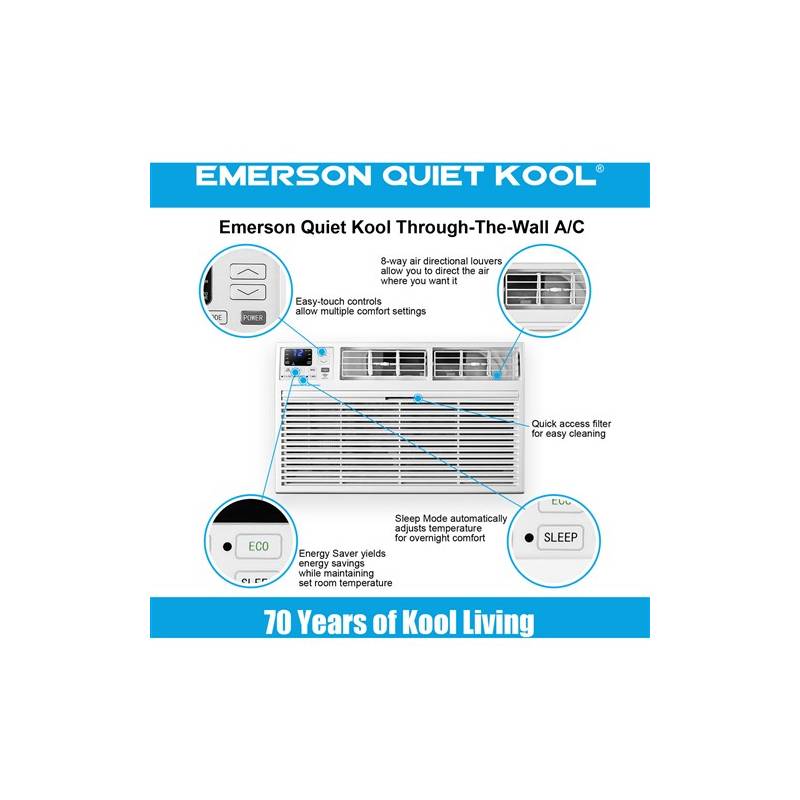 Emerson Quiet Kool EATE12RSD2T 12,000 BTU Heat/Cool Wi-Fi Through the Wall Air Conditioner Features:
