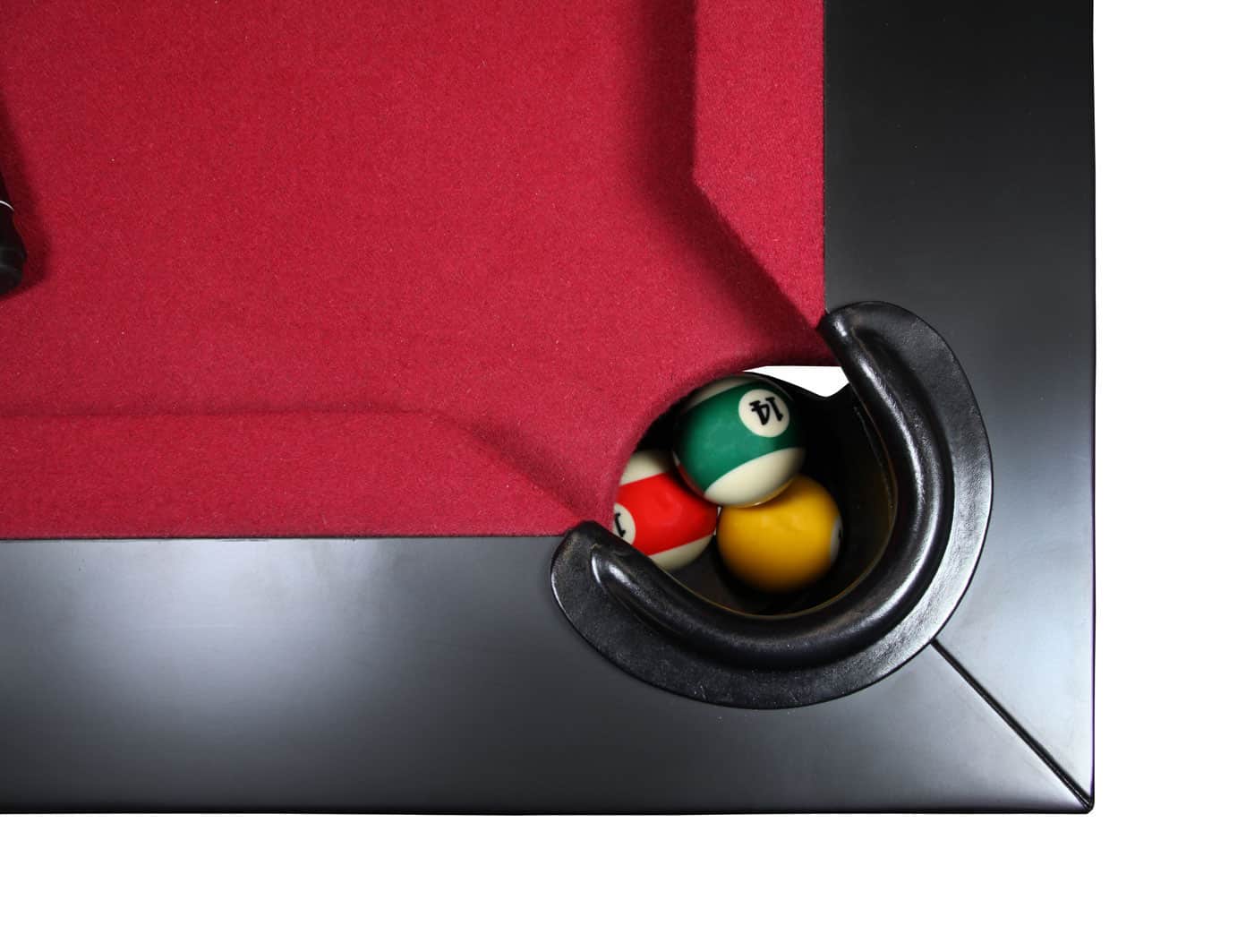 - Upgraded Top Grain Leather pool ball drop pockets.
