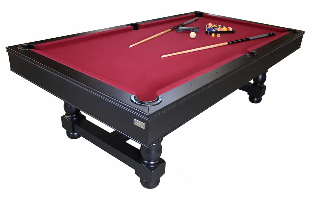 The English Countryside Handcrafted Wood 8 Ft Pool Table was meticulously designed and built with style in mind. From the real wood turned legs to the designer inspired metal hex head pattern inlays you get these since this table was designed to not only function as a pool table but to also add a touch of style to your home. The design features continue with real leather ball cups, and professional-grade wool cloth felt.