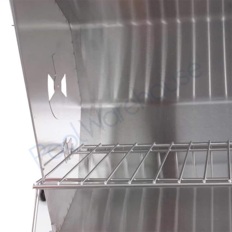 Stainless Steel Charcoal Grills feature a smoker hood with adjustable vents on each side to regulate heat and airflow. |