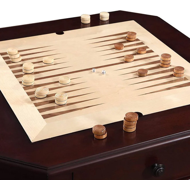 - Multi-purpose table top surface is large enough for board games or puzzles; flip for backgammon; remove for recessed chess/checker playfield