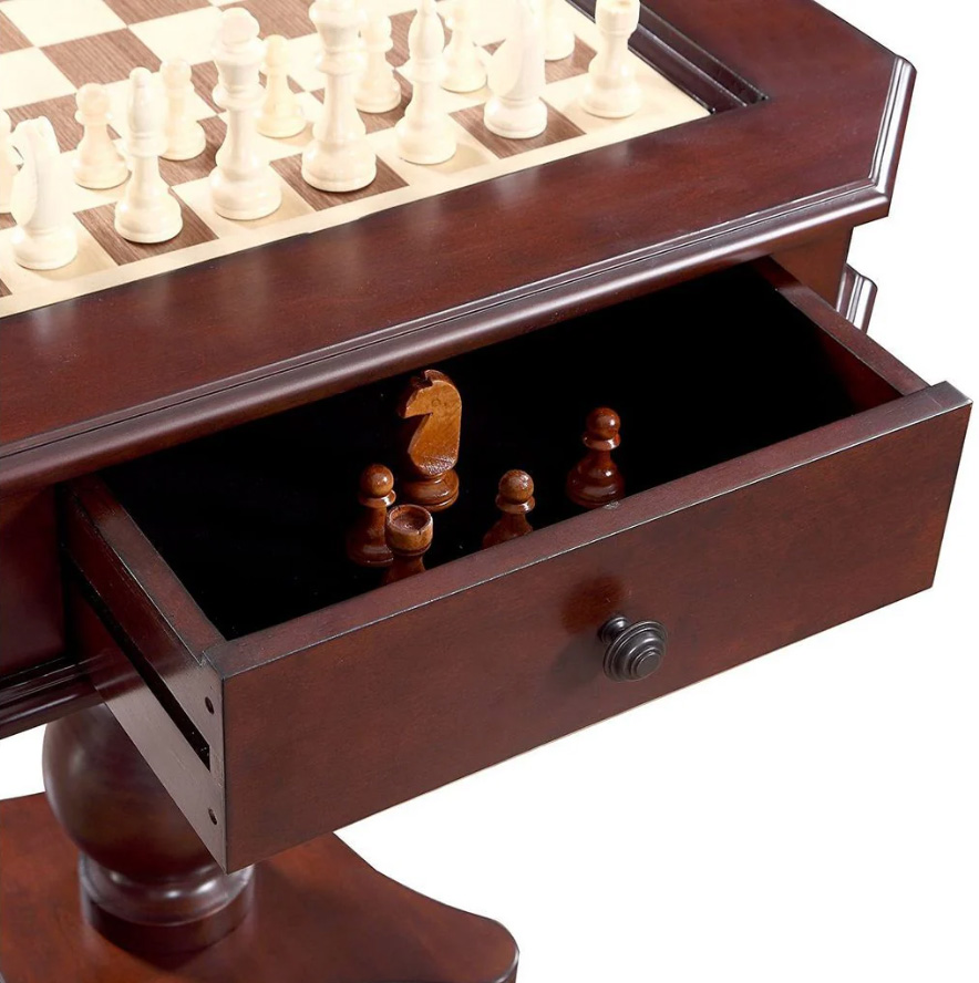 Fortress 3-In-1 Chess, Checkers, & Backgammon Game Table Set with Mahogany Finish Features: