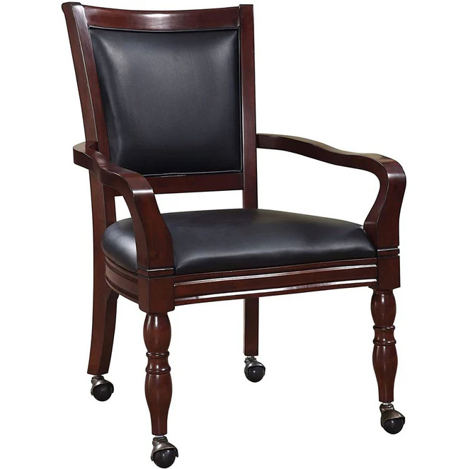 The Fortress combination Chess, Checkers & Backgammon Pedestal Game Table & Chairs Set in Mahogany is fully equipped for head-to-head chess, checkers, and backgammon competition. This handsome set, traditionally styled and finished in a rich Mahogany, is crafted from solid hardwood. It features a decorative, sturdy, 6.75-in diameter, poly-resin pedestal base built to fully support the unique 3-in-1 game table design. The recessed chess/checkers playfield is accessed by removing the reversible top/backgammon play surface. The two extremely comfortable, soft padded game chairs add the finishing touches to this multi-functional table set.