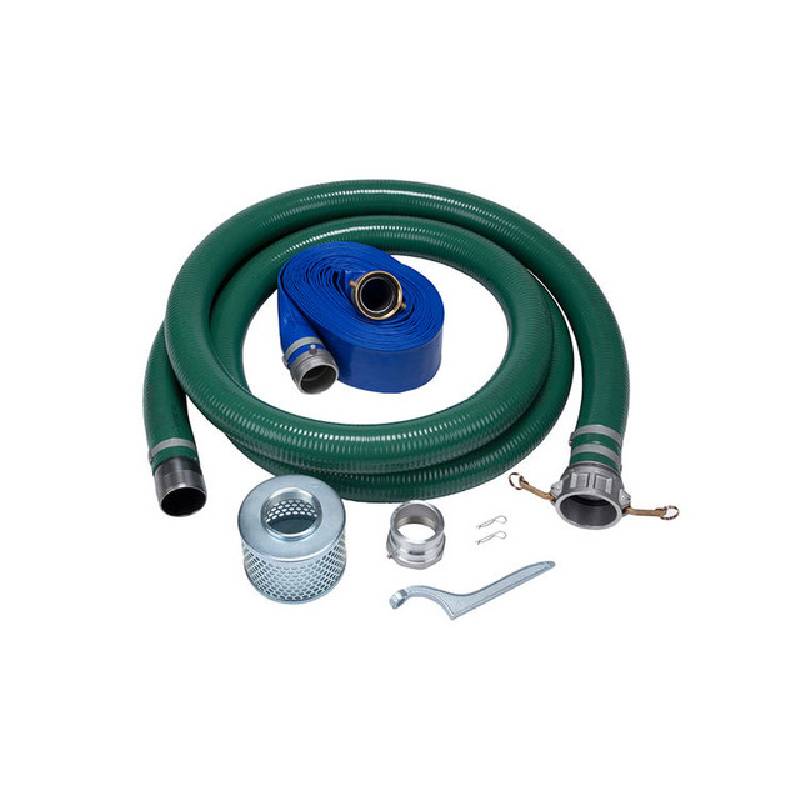 The Franklin Electric LG617201 includes one 20 ft. suction hose and a 50 ft. discharge hose with quick couplers for convenient connections. Male quick coupler adapters for the pump are included. Hose kit comes complete in one box fully assembled.