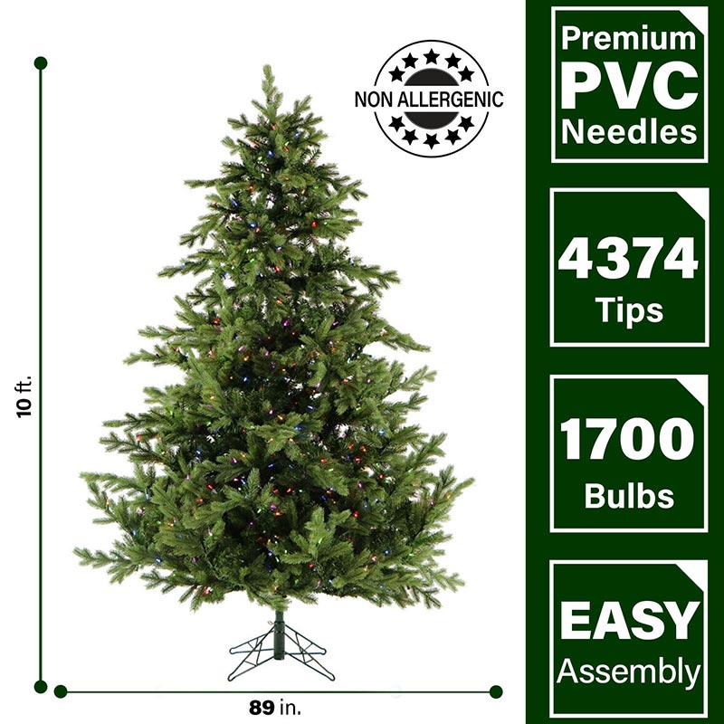 - PRELIT WITH EASY CONNECT TECHNOLOGY AND LONG LASTING MULTI-COLOR LED LIGHTS: Pre-strung with 1700 colorful LED lights to bring a festive glow to your home. Instant one-click connection makes assembly a snap. No wires, no hassle – one plug for the entire tree.
