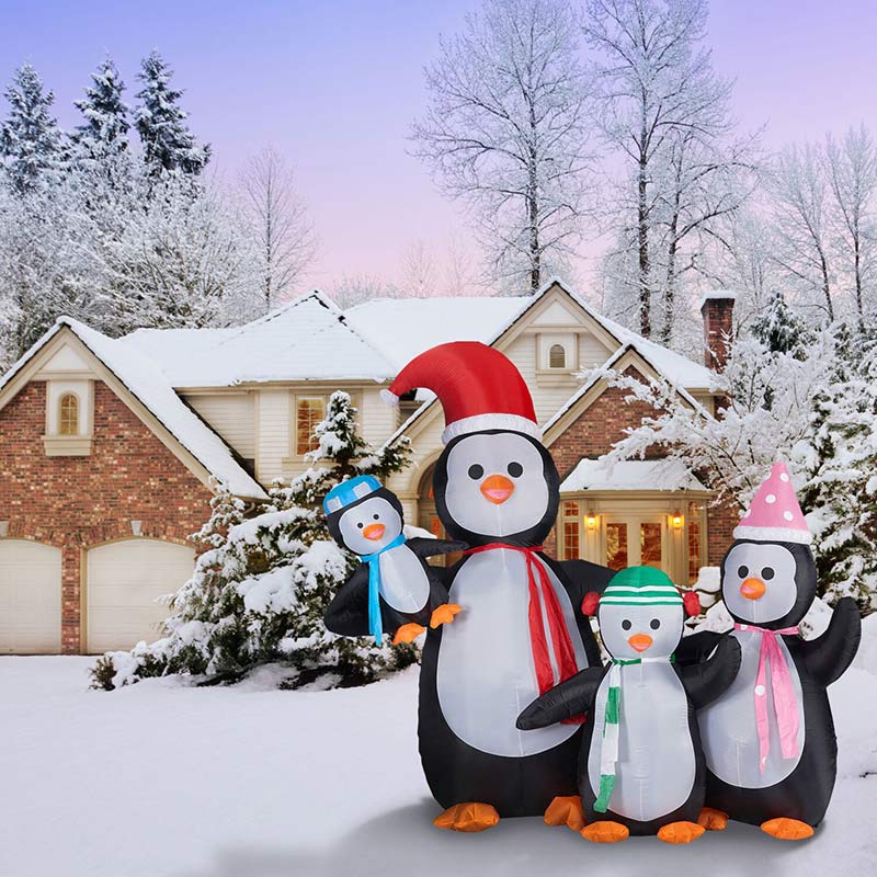- Penguin family airblown inflatable illuminates day and night with 6 internal white LED lights