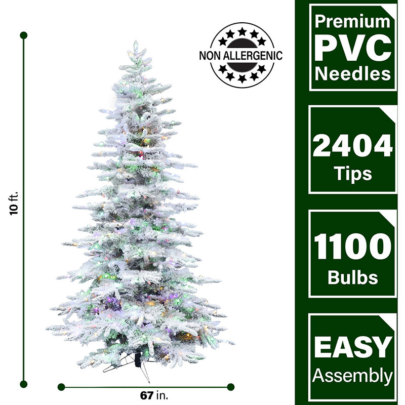 - NOT YOUR AVERAGE ARTIFICIAL TREE: 2404 snow covered lifelike tips create the appearance of a natural cut tree. Our premium fade resistant flocking material is MADE IN THE USA.